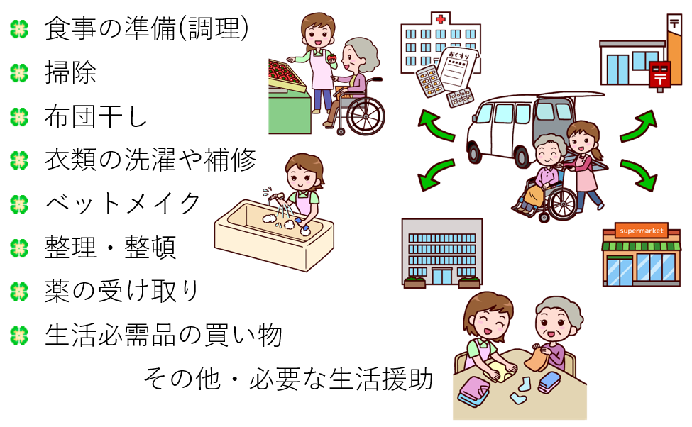 家事をお手伝いし、お客様の自立を支援するサービスです