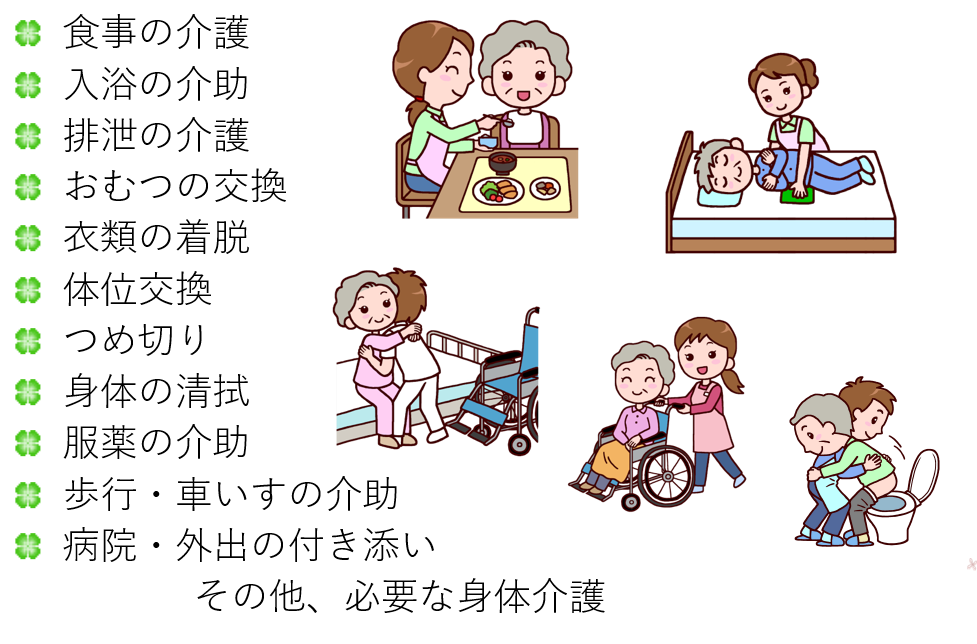 介護福祉士やホームヘルパなど、□のある訪問介護員がご自宅を訪問し、日常生活のお手伝いをさせていただきます。日常的に介護を必要とするお客様のための「身体介護」や、お客様が家事を行うことが困難な場合の「生活援助」のサービスを提供いたします。